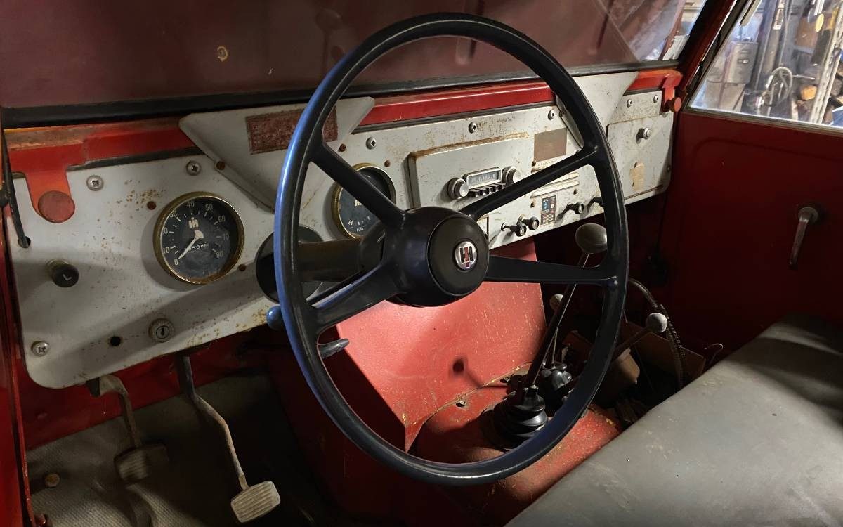 Power is provided by a 92 HP, 152 CI, in-line four-cylinder engine connected to a three-speed manual transmission which invokes a transfer case for the 4X4 engagement. It’s not stated if this is a running example – there are tire tracks in the snow but were they made under this Scout’s own power? An inquiry will need to be made.