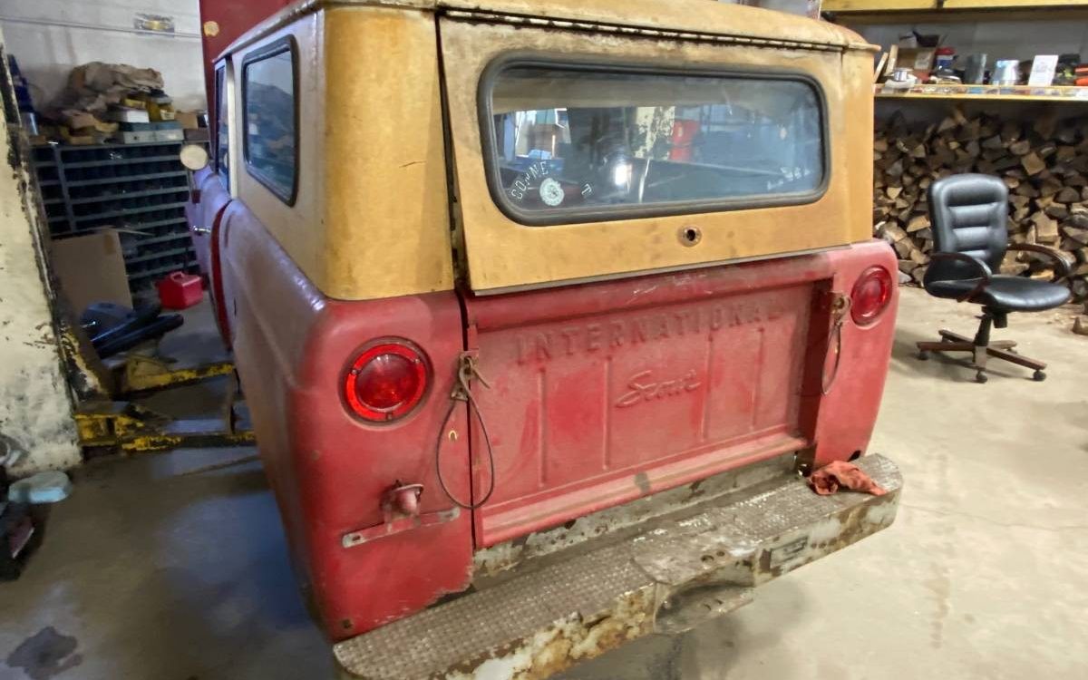 I had a ’61 Scout like this excerpt it was a pickup. Plain Jane as they come. Sliding window and a bench seat from the factory. Great little truck.
