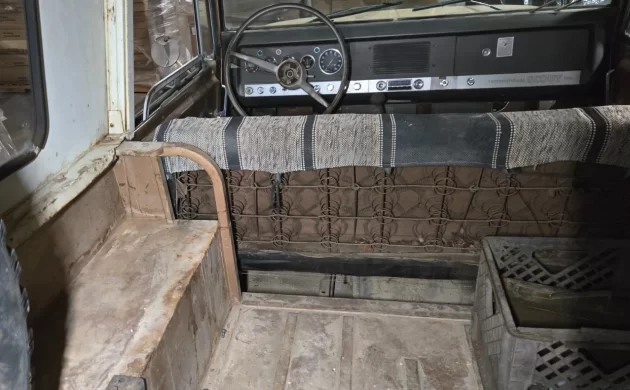 The Scout’s formula was similar to the Bronco’s, or I should say the Bronco’s formula was similar to the Scout’s, since the Scout was introduced six years ahead of the Bronco. Technically, this Scout is an 800 series, which spanned the years ’66 through ’68. This example, which is as basic as they get, has been parked for the last 35 years, but it appears to be solid. The listing includes numerous images of the body panels and underside, and rot doesn’t appear to be a serious problem – the seller does state that the storage has been dry. For the most part, the body is straight with just a minor contusion here or there, though the front bumper has been kissed. The finish? Well, it looks original, that’s for sure, but it has obviously seen better days. The chrome-slotted wheels are one of those “I’ve seen these before” items; a Chevy or GMC truck, perhaps?
