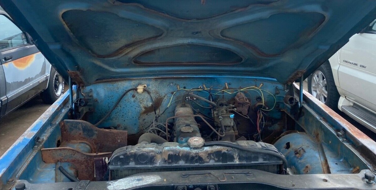 The seller’s 4WD wagon was kept in a barn for several years and acquired from that owner’s estate. He/she intended to restore it, but other projects have taken precedence. The engine, either a 232 or 258 cubic inch six-banger, is said to run well, paired with an automatic transmission. However, the brakes need to be serviced so driving past the end of the block wouldn’t be advised.