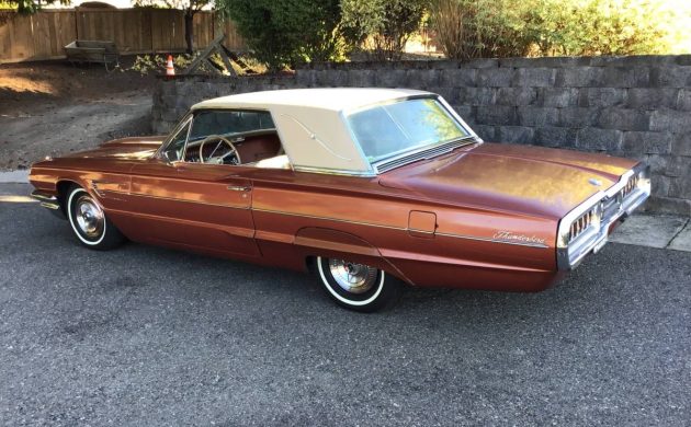 The engine photos were taken outdoors in the shade and are very, very dark. All Thunderbirds came equipped with a 390-cubic-inch, 4-barrel, 300-horsepower Thunderbird Special V8. A generic 100,000 miles is listed on the odometer and the seller states, “lots new: alternator, starter and solenoid, battery, complete tune up, rebuilt carb, new brake system and more. Drives good.” With its sleek mid-60’s styling and luxurious features, many (including this T-Bird lover) think the fourth-generation ’64-’66 “Flair Birds” were the last of the true Thunderbirds. With its great color combination and condition, and relatively low production number, this is one of the most striking and desirable ’65 Thunderbirds I’ve ever seen. What do you think?