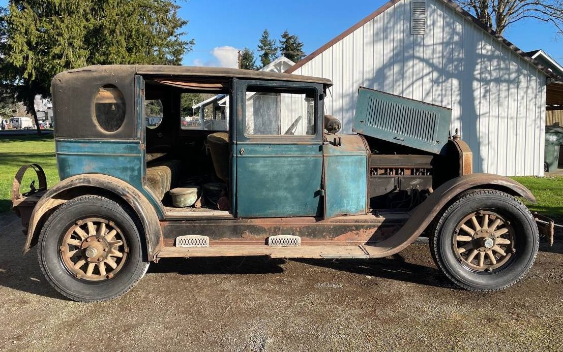 As usual, there are pluses and minuses. The pluses include this being a non-Ford – nothing against Model A’s but they hog all of the late ’20s attention and it’s nice to find something other. The minuses are, it’s not a Ford and the missing parts are probably going to involve an arduous scavenger hunt. And, there are just so many unknowns here with the wood structure, engine, and interior. So, what do you think, does that one plus, outweigh the minuses?