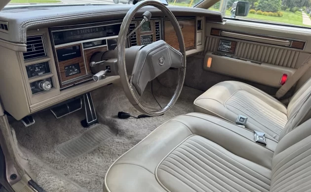 Of course, the Cadillac was still loaded up with the features and luxury you’d expect on the inside, with plenty of leather the thick, shag carpeting. The seller of this particular Seville is correct to hype the condition, and he notes that the numerous tech and power features all mostly work, save for the horn and the wipers. Is there a shared connection in the steering wheel and column causing those features not to function? You might get lucky pulling off the steering wheel. The door panels and wood-style trim are both in excellent shape as well, and as the cherry on top, the seller notes that the 8-track still works, too.