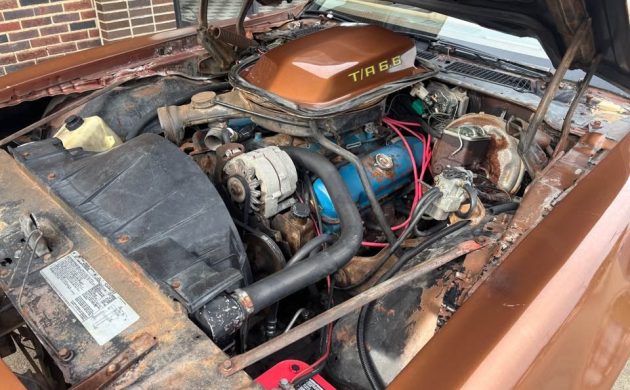 In 1978, the Pontiac Trans Am could be ordered with one of three engine options depending on location and order: the standard L78 400 V8 (180 hp, GM Turbo Hydramatic 350 automatic transmission), the California-only L80 403 V8 (185 hp, GM Turbo Hydramatic 350 automatic transmission), and the performance-focused W72 400 V8 (220 hp, GM Turbo Hydramatic 350 automatic transmission or Borg Warner T-10 manual transmission). This car appears to have the base engine. The W72, with dual exhausts, increased to 220 hp from the previous year’s 200 hp, and came with either an automatic or Borg Warner T-10 4-speed manual transmission. Midyear, Pontiac limited the W72 to the 4-speed manual only; thus, a W72 paired with an automatic marks an early 1978 model.