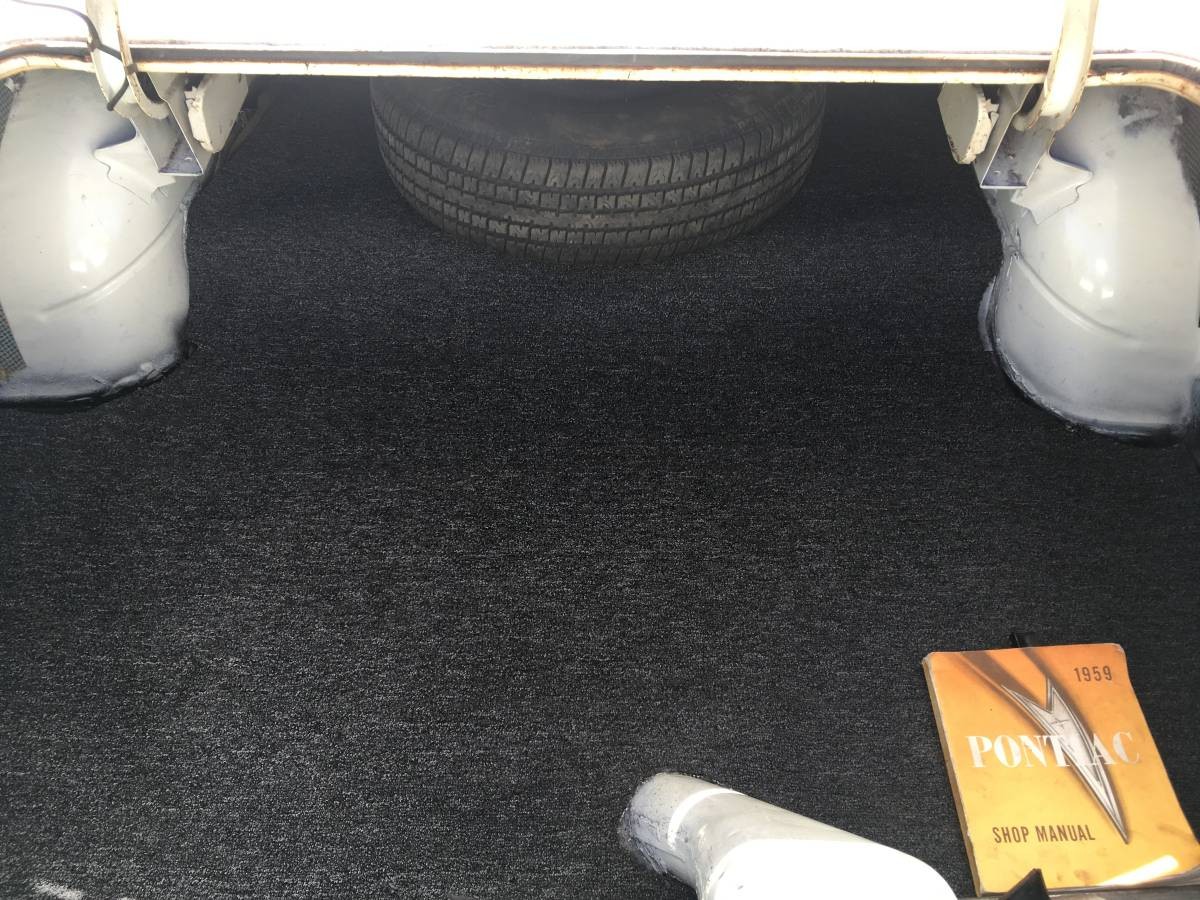 The Catalina “bubble top” was a popular model, comprising 38,309 units out of total Pontiac production in 1959 of 382,940. The body on this one is in decent shape after 62 years, but certainly not perfect. There are some small dents and dents, the largest of which is in the driver’s side door. There is some evidence of rust in places like the right rear quarter panel. The interior has been given a nice facelift, with new upholstery, headliner, and carpeting. There are a couple of hairline cracks in the glass, but nothing that requires immediate attention.