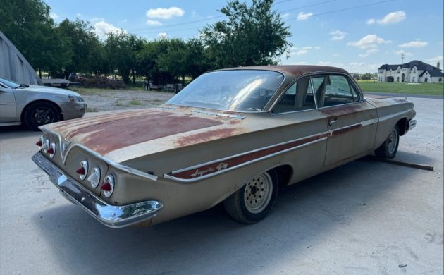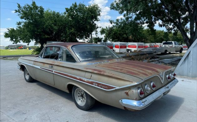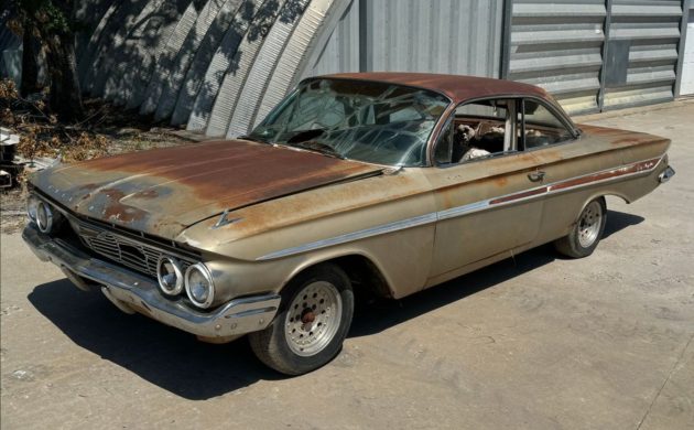 Few full-size Chevrolets stir interest quite like a genuine bubble top, and this 1961 Chevrolet Impala listed here on eBay brings that rare roofline together with a long-off-the-road California history. According to the seller, this is a real Impala bubble top, not a conversion, and it comes with both the door jamb VIN and the cowl tag still in place. The car is said to have been off the road for many years, making it a true long-term project candidate rather than a recently shuffled-around flip. Thanks for the tip, Mitchell G.!