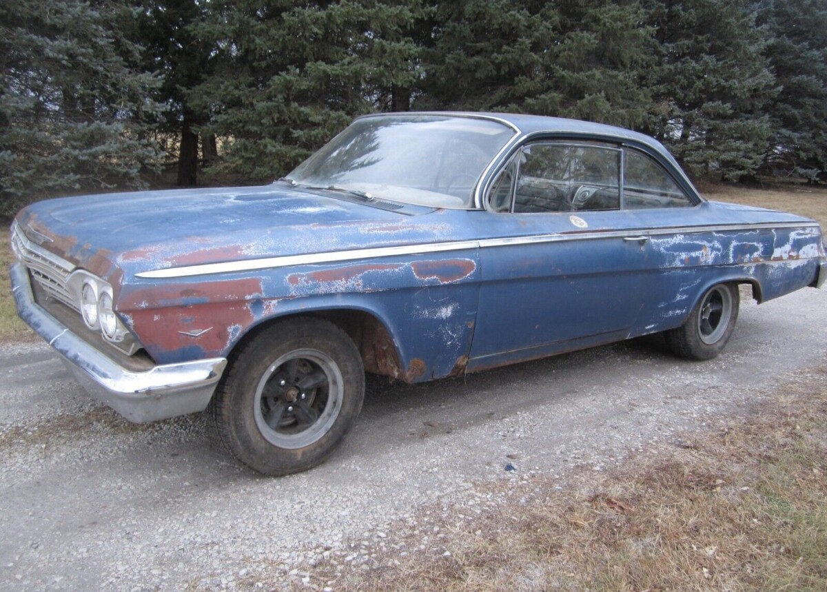 I have fond memories of the 62 Biscayne 2 door post, 283 powerglide I had when I was 16. It was even the same color as this one. I did my best to fix it up but had no budget. Found an Impala deck lid (with more taillights) in a nearby rural junkyard. The yard owner gave me a gigantic ring of keys and told me if I could get it open I could have it for $25. I tried each one until one of them finally worked. Not long after that I hired a classmate’s brother who was going to a nearby Auto Tech program to rebuild the 283 and put in a 3/4 racing cam. Unfortunately when I got it back it didn’t run any better than before. Later, after selling the car the new owner told me the cam and the crank were a tooth off and after fixing that the thing ran liked a striped-a** ape. The funniest (stupidest) thing I did was with the interior. I found a absolutely perfect front seat, bolted it in and it looked great. What I failed to realize was that a 4 door seat doesn’t allow access to the rear seat unless you ran the seat all the way forward EVERY TIME someone got in the back seat! Steep learning curve? Oh yeah. But I had a LOT of fun. This will make a beautiful hot rod or cruiser no matter what engine goes in it. GLWTA.