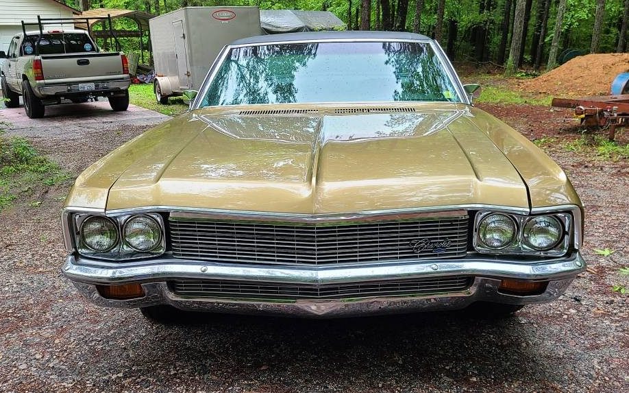 The exterior is a perfect match for the interior – it is like new! The Autumn Gold lacquer finish (assuming that it is original) is still quite strong with lots of depth and a notable reflection. The black vinyl roof covering has escaped the scourge of weather and father time, it appears to be in perfect condition. The body integrity is what really caught my attention. The 1970 “B” body, along with its very similar ’69 predecessor, are known as rust magnets, the lower end of the front fenders, and the lower portion of the quarters behind the rear wheels, in particular. The front fenders were adversely affected by Chevrolet’s “flush and dry” cowling system that was supposed to drain moisture away and dry it with air moving downward through the cowl. Instead, they were more like “clog and flush” as they would back up, trap moisture and rot from the inside out. I lived the life with my ’69! Throw in a little road salt, and you’d be fender-flapping in the breeze inside of about five years. But I digress, this ’70 sedan is having none of that nonsense and is very sound. The rally wheels are a nice touch too. And while they could have been added at any time, they were an available option on all ’70 “B” bodies and these appear to have the correct width and offset.