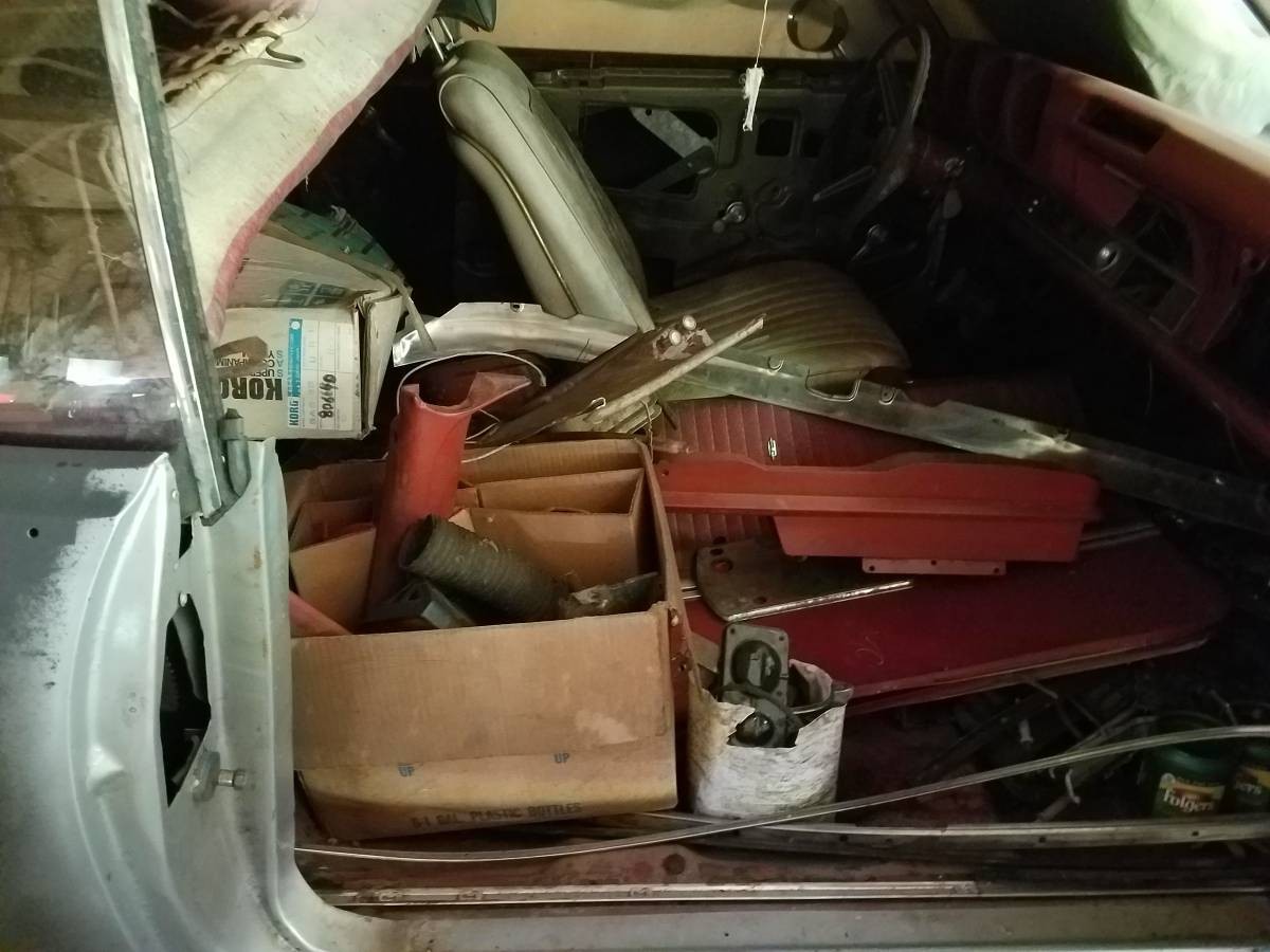 The interior is going to need some work, but once again you could choose to work with a blank canvas to build it the way that you want it. It’s hard to tell from this shot, but it’s possible that the dash pad may be crack free. It also looks like the door cards may be buried in there as well. The seller states that it comes with lots of parts, but doesn’t elaborate on what these are.