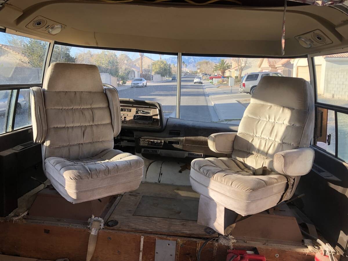 This 1976 version has hit the market at the point it is as ready for conversion as it can get. Most of the interior has been gutted, save the captain’s chairs up front and some of the interior panels. We don’t receive much from the seller beyond the fact that it is powered by an Oldsmobile 455 cubic inch V-8, and this is one of the rarer 23-foot models. Most were built as 26-footers. The seller tells us that the engine starts and runs very well. While it is advertised as drivable, the braking is a bit in question. The seller suggests that the vehicle be towed to the buyer’s final destination to be on the safe side.
