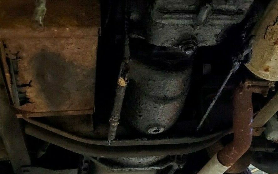 Underneath looks fairly solid though there is some rust through on the driver’s side in what looks like a battery box. The transmission is coated in what appears to be mostly dried-on lubricant but that’s not surprising. The engine’s oil pan looks dry, however. With older cars like this, there are frequently no underside images accompanying the listing so this is a nice inclusion.