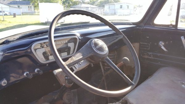 This one looks really good. Looks like a perfect candidate for a running restoration; fix it and drive it at the same time. Unless it got changed out for something that was immediately available, this would have the Mercury 255 motor; Mercury trucks were running the 255 across the board in its light trucks from ’51 onward. A Warner T-98 transmission that offered synchros and less howl than the T-9 that preceded it.
