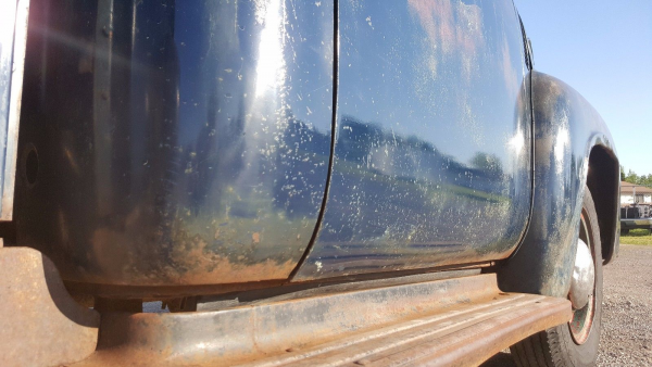 Another surprise is the cab corners. Usually the rust out is so extensive that you can put your fist through without touching anything. Not so here. While we cannot see what it looks like from the inside, the outside seems to be suffering from surface rust only. This would save a buyer a lot of time and cash, as replacing cab corners is not easy to do for the average restorer.