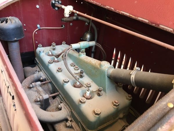 Under the hood, you can see one reason why these trucks were so slow. If you look carefully, rust pitting has been cleaned up on the cylinder head and underneath the hood. This damage could probably be made to disappear with some high build primer and some sanding, but it gives you a good idea of the rough life these trucks lead both during and after their service. Also notice the oil can on the firewall. Lubrication schedules were a little more frequent back then, and these cans are a common sight on vehicles made before 1930.