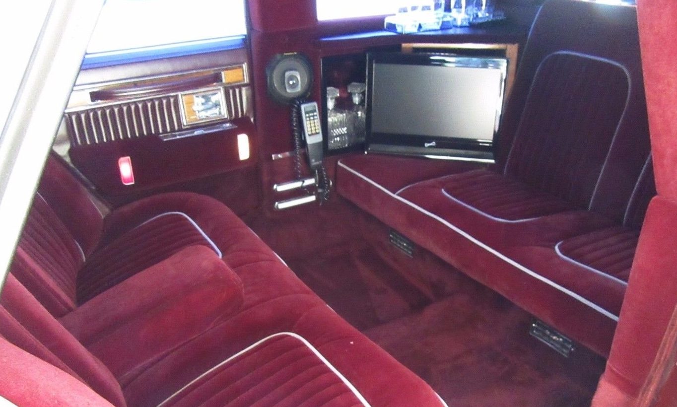 Curiously, the Cadillac retains its full leather interior up front, and in a different shade of maroon. Perhaps the original leather interior in the backseat area was trashed, hence the quick refresh in non-matching cloth. Regardless, the seller says everything works as intended and that the driving experience is a reliable one. Your driver (and you) will enjoy ice-cold air conditioning, while the front seating compartment is the only one that gets to recline in power bucket seats.