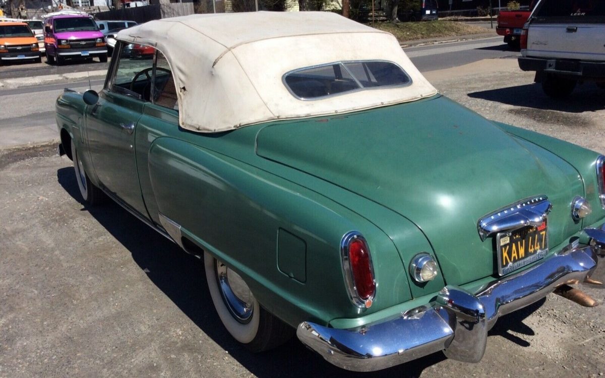 My dad was a Studebaker man, I came home from the hospital in a 50 convertible, black, red leather interior and white top. It also had some rather substantial bumper guards on it, with over rider bars like an old (pre1968) VW, but higher. I am surprised to see the original two pane glass back window, the majority you see now are a full size plastic window. I still have the original window from my dad’s when he replaced the top around 1956 or so. If I didn’t have so many projects now I would be tempted.