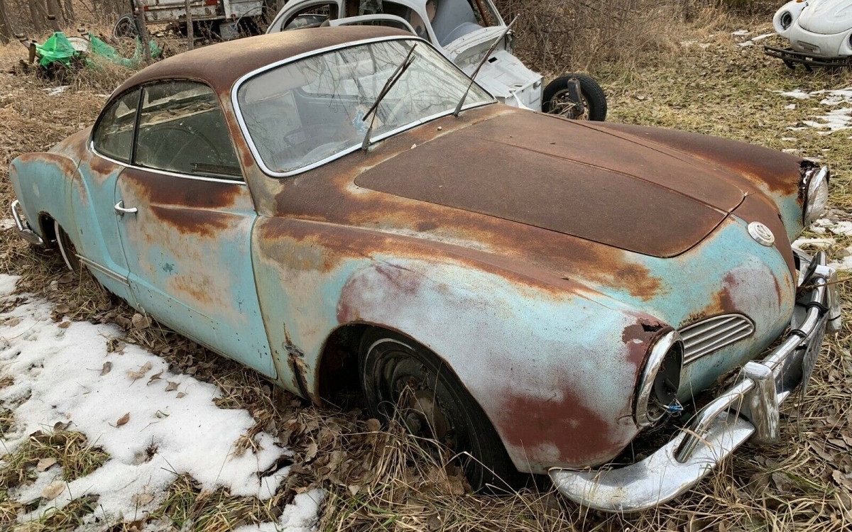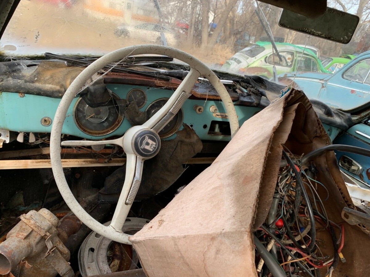 This can be for a few reasons, ranging from they were broken off to the fenders were replaced following an accident. Regardless, the Karmann Ghia here has plenty of other issues beyond missing turn signals. It appears to be in a junkyard (and one I’d like to explore) given you can see a later Eagle Talon in one photo with a field of air-cooled VWs in this picture. Most older yards it seems always have a few spots dedicated to vintage VWs, and I’m guessing this owner decided the KG could live in.