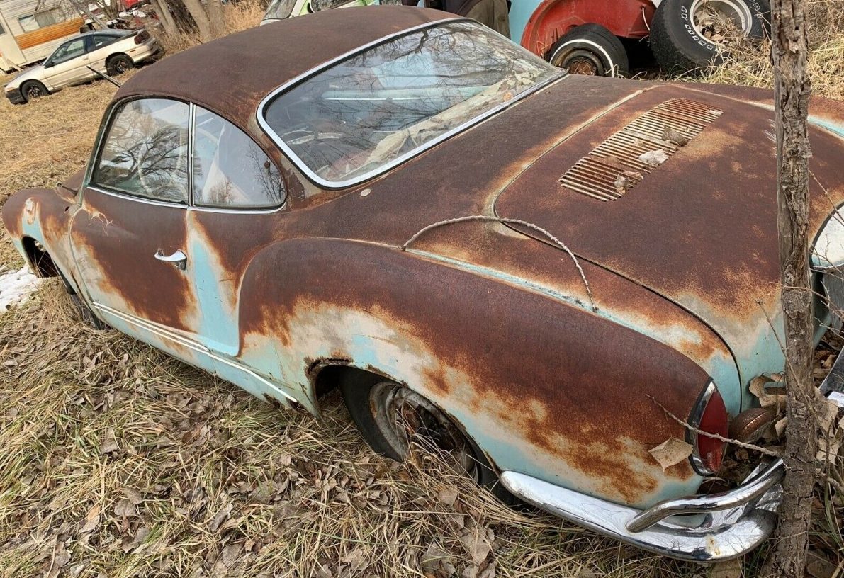 This lone picture of a door panel shows a surprisingly solid part that could be re-used in another project, along with other bits including the bumpers and chrome trim. The Karmann Ghia is located in Nebraska, which could go either way in terms of how rusty it is underneath – but it’s clear from the photos the VW has been sitting awhile. Does that make the asking price a fair number or is there not enough meat on the bone to justify the price?