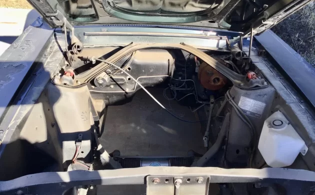 At 22,770 now. Needs at minimum $15,000 worth of body and paint work, and that doesn’t include the rust-munched trunk area. What else may be hiding? No engine and no transmission, no master cylinder; where is the engine harness?