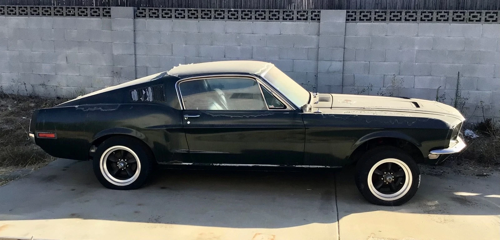 A 6 cylinder, oh the horrors. For those that don’t have a FB account and can’t access the ads, the current bid is $20,800 and 340 viewers and 38 bids. The “Bullitt” hype is strong with this one, and rightly so, it was a really cool movie. It’s okay, I’d almost rather see that than this. Probably was a 3 speed, and there were actually quite a few 6 cylinder Mustangs, in fact, there was a Mustang ad campaign in Cal. that said “Six and Single Girl” a spoof on a popular book of a similar name at the time, that never made it to conservative Midwest, BTW, and I bet this was one. Guys didn’t buy 6 cylinder Mustangs in ’68, wasamatteryou?( laughing and pointing when the hood was raised). This was by no means a bare bones Mustang, Shelby wheel added later, and not sure if 6 cylinder suspension is compatible with 428 CJ. And for what? The 6 is a great motor, or even a small block, but temptation will be overwhelming to do the 390 thing, have at it. For me, these were the best Mustangs EVER!