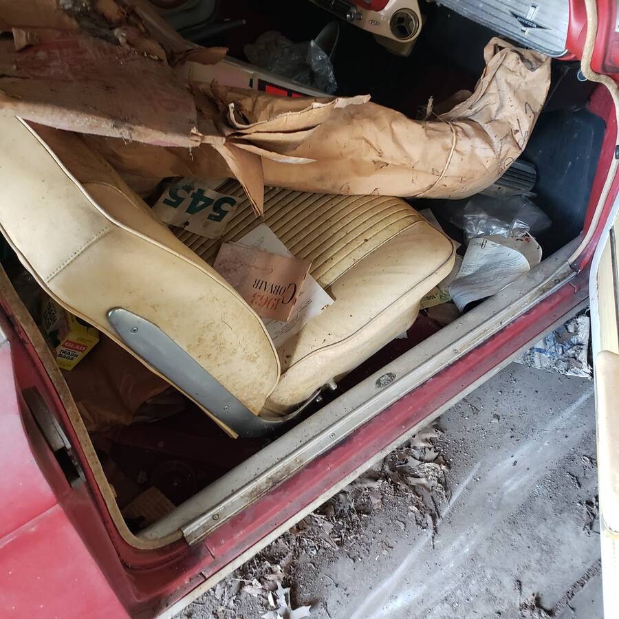Because there is stuff piled up everywhere, photos of the Corvair are limited. From what we can tell, the body looks to be solid, but you never know. The seller would make a better case for the Chevy if he/she removed it from its captivity and cleaned it up, but then it wouldn’t be a “barn find.” The engine, which should be an 80 hp, 145 cubic-inch flat-six, still turns, according to the seller, so perhaps herculean efforts won’t be required to get it running again. Extra body parts come with the Corvair, like a spare bumper and side chrome plates. The interior is said to be okay, but things are stacked inside the car, as well, making it hard to tell. The odometer reads less than 60,000 miles.