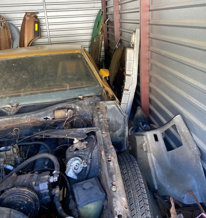 Because of its surroundings, it’s hard to determine the condition of the body and sheet metal on this Ford, but at a minimum, the floorboards are shot. Large, gaping holes are present and much of the interior looks to be missing or in storage. The gold exterior paint and black vinyl interior would have been a great combination when this car was new. The Mustang comes with a Marti Report but no title, just a Georgia Bill of Sale (although the car is in Florida). A car like this can fetch mid-five figures when restored, but this one is a long way from there.