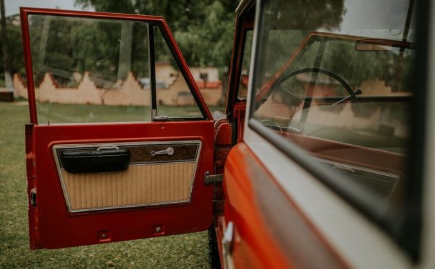 The interior has been lightly restored, which included the installation of new carpeting and vinyl seat covers. The cabin otherwise remains largely original, with the factory radio still in the dash and super clean door panels. The back seat isn’t currently installed but will be included with the sale. The seller is including NOS material for recovering the seats in the factory correct upholstery, and also offers sellers the options of doing this work before delivery. As noted in the listing, Explorer package Broncos are desirable, especially ones that haven’t been painted and had their original stripe kit deleted. Bidding is active – where do you think it will end up?