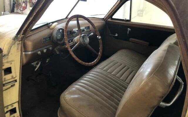 Another cause for concern is under the hood where the 103 HP, 230 CI, in-line, flathead six-cylinder engine looks to be missing a few things. It is stated that this car has been sitting for a while and the engine’s appearance would bear out that sentiment. Whether it turns over is not stated but it’s logical to assume that this lump will be given the bum’s rush by the next owner. A three-speed manual transmission handles gear changes.
