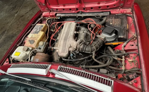 The Busso V6 was rated at around 155 horsepower when new, and that power is sent to the rear wheels via a 5-speed manual transmission. When it comes to what’s on the ground, this Alfa sports a set of aftermarket wheels which I personally do not like; I wish it still had the understated-but-gorgeous Campagnolo wheels. One tweak it does have that I’m a fan of is the period-correct Ansa exhaust which should make the glorious Busso V6 absolutely sing once the next owner figures out what it needs to run again. The oil is said to be clean on the dipstick, but I’d be more worried about old gas left in the tank. Do you think an 80s Alfa is a great choice for an Italian GT?