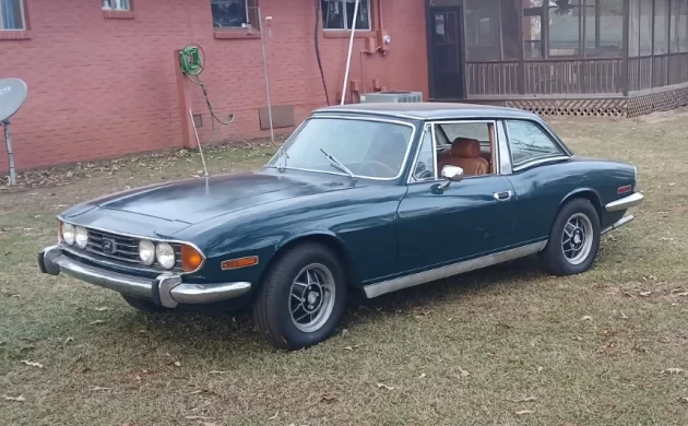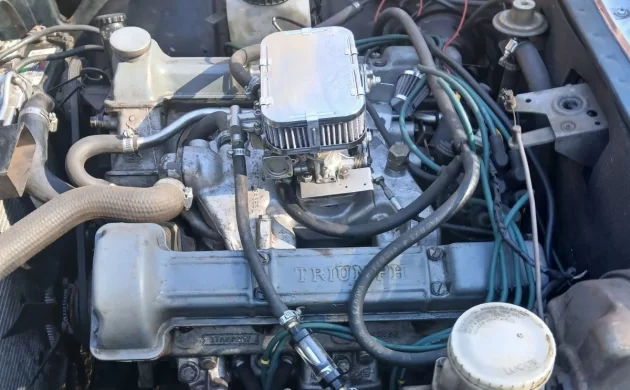 Fortunately, this Stag has a recently rebuilt engine, including “new timing chains, head gaskets, tensioners, gaskets, seals, valves, valve guides, water pump, fuel pump, carburetor, coil, alternator, starter, etc.” It has new tires and apparently runs, drives, and stops well.