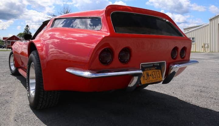Legendary custom auto designer Chuck Miller was the first to take the 3rd generation Corvette C3 platform and design what became known as the Sportwagon. Conversion kits were available from American Custom Industries (ACI) and Eckler’s in the early 1970’s. In 1976 John Greenwood would famously expand Miller’s design in an effort to make the wagon more aesthetically pleasing. His prototype was successfully debuted at the SEMA Show in Anaheim that same year. Greenwood would eventually team-up with Eckler’s in the late ’70’s to sell kits to owners yearning to make their ‘Vette undeniably unique. This ’69 Sportwagon conversion, shrouded in mystery, is offered at $25,000 and is available here on Craigslist in Upstate, New York.