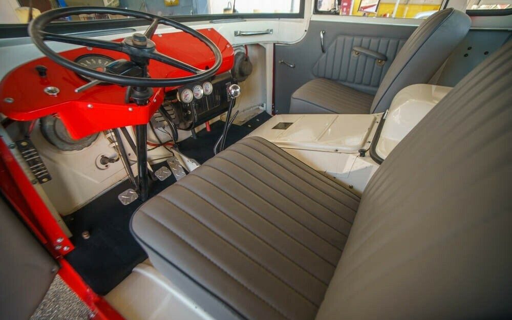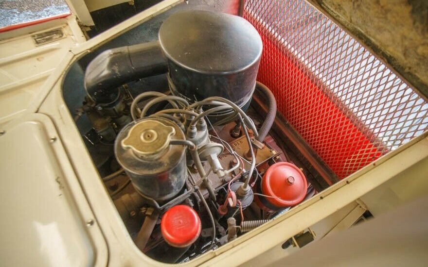 The engine is a 226 cubic inch “Super Hurricane” in-line six. It is linked to a Borg-Warner T-90 three-speed manual transmission which shifts power through a Spicer two-speed transfer case. The front axle is a Spicer 44 with 4.89 gears while the rear is a Spicer 53 stuffed with 4.88s.