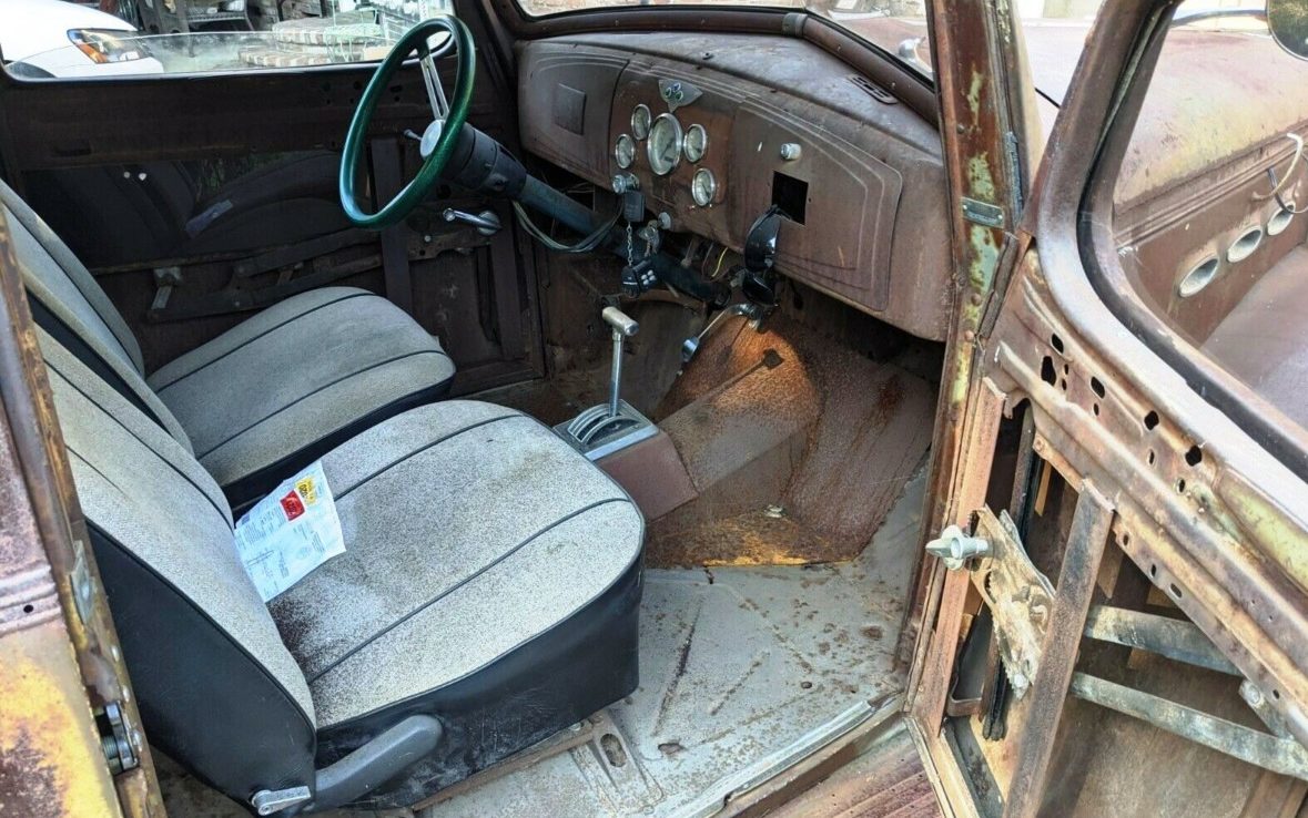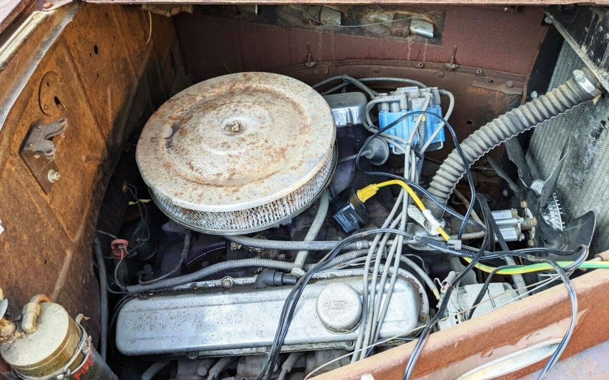 I know that there will be a lot of scoffing about the surface rust and such, but I think this is just a great car. I mean, if it were cherried out and covered with perfect metalflake Candy Apple Red paint, it wouldn’t be as cool. I like the crusty wheels, and the fact that it has a Caddy engine just seals it for me. I had a ’71 Fleetwood 75 with of course a 472, and it was decidedly NOT gutless, so this Terraplane should move out smartly. Somebody’s gonna have a lot of fun with this car.