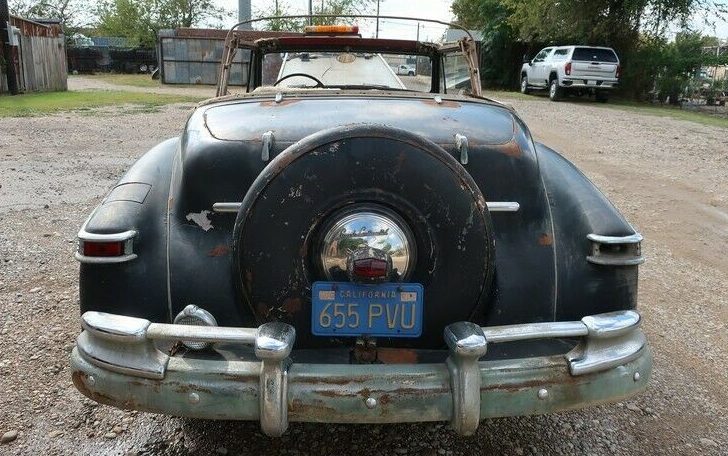 The first photo shows another behind it. A ’42 – ’48 by the headlight trim. These cars are huge, in person. And values, relative to inflation, and muscle cars of the ’60’s, are declining, so this will take more $ to restore than it will be worth – there are enough very nice ones for all the museums that want one.
