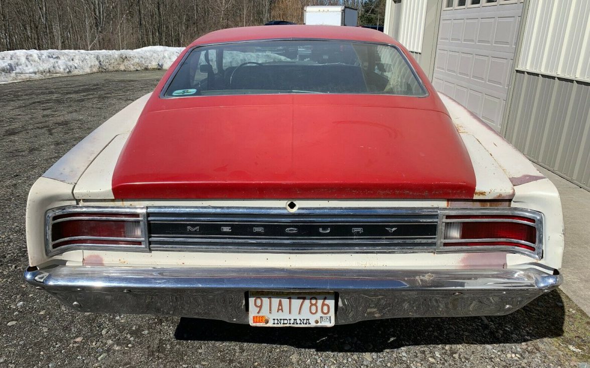 The first observation is the hood scoop which doesn’t appear to be original. I could find no reference for it or another Spoiler II example wearing one. A peculiar aspect of this Cyclone Spoiler II is that it has no spoiler! Apparently, it came unattached and in the trunk, requiring installation by the dealership if so desired by the purchaser. There appear to be no bolt holes in this Cyclone’s decklid so the spoiler was probably never installed. The paint is considered to be original, other than the gray primer slathered across the poorly repaired quarters. The fender legs are showing signs of rot and there are contusions and surface rust showing here and there. The seller makes mention of the dry-rotted tires, they are some very old bias-ply Goodyear Rally GTs.