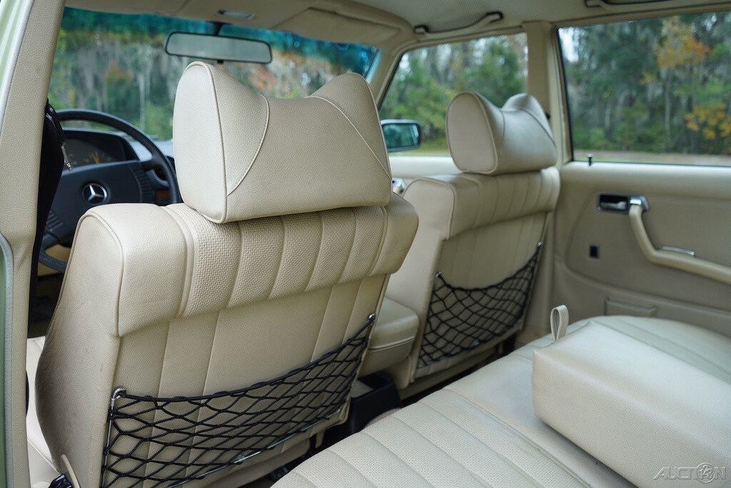 It makes you wonder if the unusual paint code was special-ordered, perhaps part of the European delivery program. Mercedes-Benz, perhaps more than any other brand, did an impressive job convincing Americans to buy their car overseas and spend a month touring the European countryside before shipping it home. Seeing a W123 in this sort of condition suggests it belonged to a conscientious owner, so it’s too crazy to think that from beginning to end, there was a bit of a love story involved with this car, from the day the color scheme was picked out of the glossy brochure. I realize I’m romanticizing things a bit, but it’s fun to imagine a car like this having a fairytale existence (at least as far as automotive fairytales are concerned.) The hard-wearing W123 upholstery appears to be in fantastic condition.