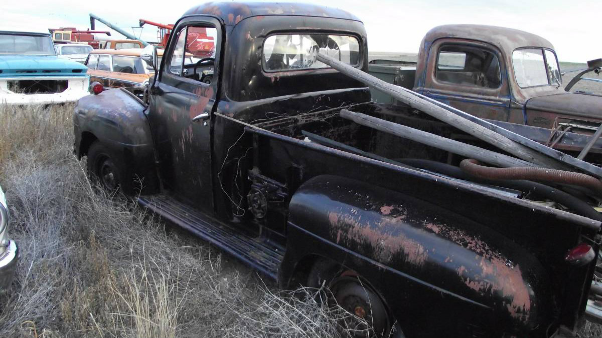 Take this International pickup for example. I think it’s around a 1953, but I’m sure you readers will chime in if I’m wrong. Sure looks solid, doesn’t it? And pretty complete, too, even down to the glass.