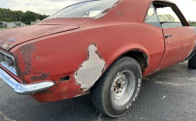 Not every classic needs a nut-and-bolt restoration, and that philosophy led someone to wrench on this mixed-bag Camaro. The 1968 Chevrolet Camaro in Camdenton, Missouri features a clean-looking 400 small block, new fenders, aluminum radiator, and new disc brakes. Attached to such promise we find a rusted dented pony car that looks ridden hard, put away wet, with stories to prompt muffling young ears. Check out more pictures and details on this interesting ride here on eBay where a single bid sets its value at $8500 as we go to press.