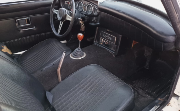 While early MGB roadsters received a three-main 1800 cc four-cylinder, the engine was updated to five-main construction in 1965, coinciding with the GT’s launch. These engines generally last longer, though the free-revving three-main can be coaxed to a long life as well. Output drifted down over time; US spec cars in 1970 claimed about 90 hp. By 1970, the four-speed manual had synchros on all gears, and overdrive was an option. Lockheed front disc brakes are paired with rear drums and a dual-circuit master cylinder. This car wears twin SU carburetors; five years down the road, only one lonely Stromberg would perform carburetion duties – thanks to emissions regulations. This example has a new fuel pump, rebuilt brake and clutch hydraulics, new batteries (two six-volts), and new tires. The seller notes that it drives well.