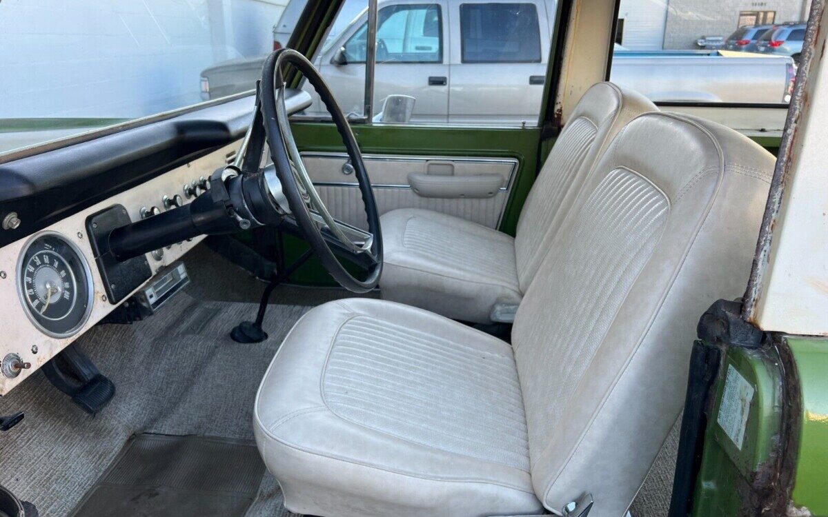 Based on the ad, I’m guessing the seller of this Bronco is a dealer or flipper. They say “We just found this 1974 Bronco…” and they put some new parts on it that seem to be good investments for a quick resale. The interior has new door panels, a dash pad, and seat covers.