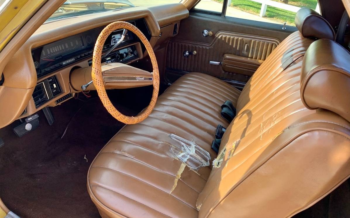 The exterior presents itself well. The two-tone #53 Placer Gold with silver rocker panels arrangement is a matter of taste but it was a popular look in ’71. The seller states that this Camino is wearing an older repaint – it still looks good as does the chrome and trim. There could be something starting in the lower leg of the passenger fender, the image is too distanced to tell and the seller makes no reference to rust or corrosion. Rounding out the exterior is the second version of Chevrolet’s everywhere rally wheels and then a cap-off with a beige/white vinyl roof covering. Unfortunately, there are no images of the cargo bed.