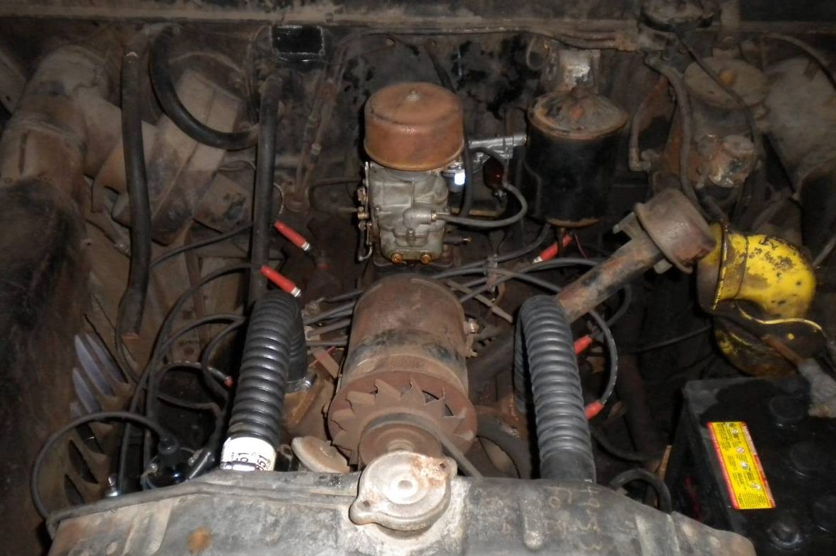 The engine compartment is in good unmolested condition. Even an accessory oil filter cannister and the heater fan are intact. The spark plugs, wires, radiator hoses and coil appear to be new. The carburetor looks clean, indicating a recent rebuild. The seller doesn’t say, but I presume he has the car running and driving at least enough to load it onto a truck or trailer. He says he’ll pay up to $500 of the shipping costs, too.