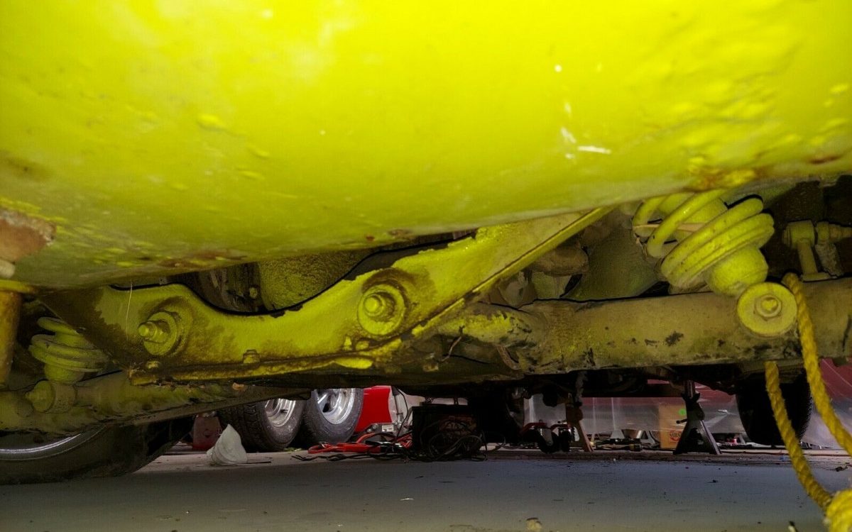 Produced between 1961 and 1975, a total of 72K Type-Es, of all stripes were assembled. Of that total, about 10K were 4.2 liter, drop fixed head coupes (FHC) so this example is not exactly a rare specimen. It has, unfortunately, been the object of a poorly applied, glaring yellow paint job. There is evidence of overspray in many places, places where there shouldn’t be, and some of the enthusiastically applied paint looks to have been shot over the top of poorly patched bodywork – and worse. Kudos to the seller for his honesty with the photos. The initial listing images of this car do not feature the front end but that may be due to the missing headlights, grille, and bumper and there is no reference made to the missing parts. Topside, the paint does appear to have been better applied, it would seem that someone got heavy in applying touch-up over lower, damaged body parts.