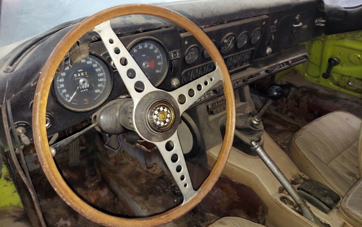 The description of this Jaguar E-Type, via the listing, claims “Gorgeous XKE FHC Coupe with Factory A/C project that runs VIDEO So Cal DRY“. I wouldn’t call it gorgeous and it only momentarily starts on starting fluid. The seller also admonishes, “Please keep in mind that this is a project car. It is not a new car and will not be fresh and perfect like that new soul-sucking Camry your Aunt Betty drives. If that’s what you are after, this is not your era, nor your car“. I would agree, this is a project that is going to need a lot of attention and $$$. The seller states in the video, that there’s a lot of effort involved in finding a barn find and acquiring it. While that’s true, finding it and flipping it, won’t be half the effort needed to turn this sow’s ear back into a silk purse, wouldn’t you agree?