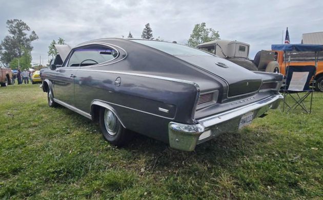 The smaller, sleeker Tarpon concept car was morphed into the production Marlin, elongating the roofline to make it practical for four passengers, thus making it a bit less graceful than the smaller Tarpon. They only came in this one body style, but… (scratching gray chin hairs), what if they made a four-door sedan version? The seller has a huge list of work that has been done to this car, so please check out the listing to see everything. The Marlin was a Rambler in its debut year of 1965, then it became an AMC for the next two years before it went away.