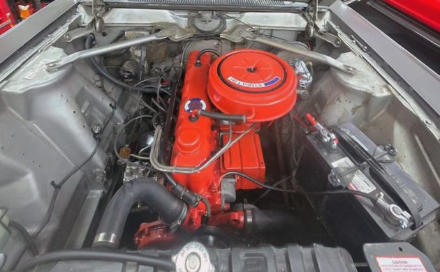 The seats look like new because they are new, and look like they fit in with what would have been there originally, at least the pattern. They appear a shade lighter than the rest of the interior, but they look good both front and rear. The small trunk isn’t shown. The seller says this car was bought new in California and has lived its entire life in Reno, Nevada. Well, not its entire life as it’s shown as now being in Redding, California.