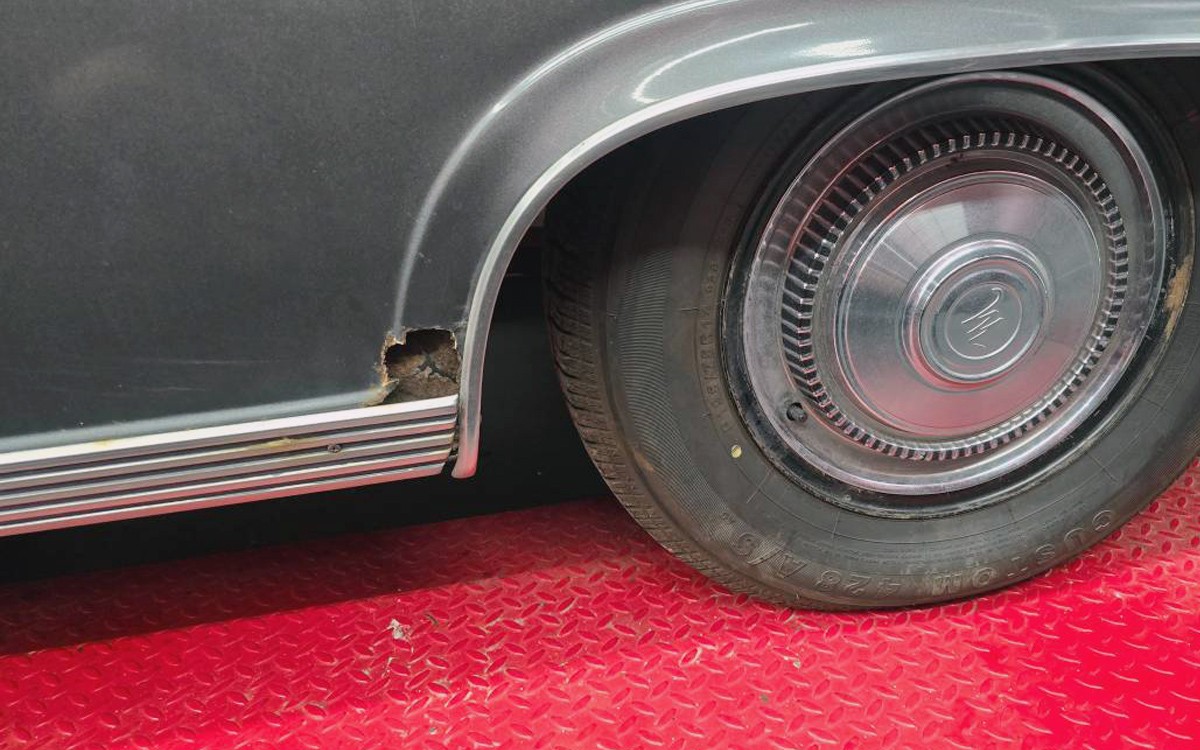 This Marlin has the smallest engine and an automatic transmission, so it may not be as desirable, but its condition may make up for that. It looks incredible in the photos, other than what is said to be the only rust spot on the car, just ahead of the left rear wheel well, as seen here. They have included several underside photos, and it appears to have been coated, so hopefully it’s as solid as it looks. Sadly, it appears that this car was originally red and has been repainted gray. That’s only sad for those of us who appreciate original spec vehicles, of course.