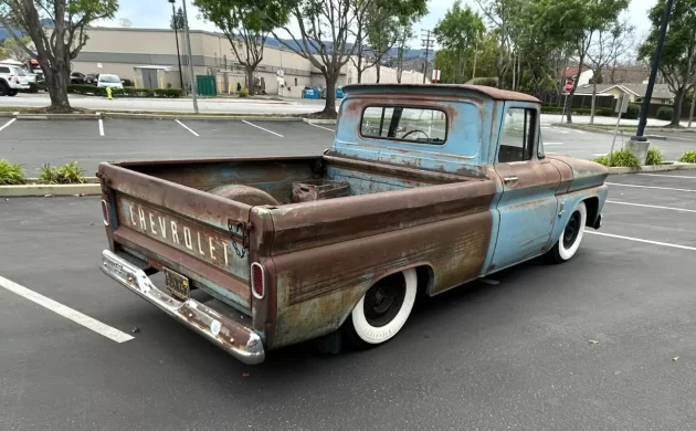 I like it because it’s lowered, all trucks look better lowered, and I like the wide whites too. Patina is not for every one, but to paint it with a rattle can or roll on Rustoleum is just tacky, as in red-neck tacky. I’ve lowered my ’58 GMC 7 inches front and back on a modern chassis and people want to tell me how much they like it everywhere I go. These trucks are a lot of fun no matter the paint condition. – CT Dave