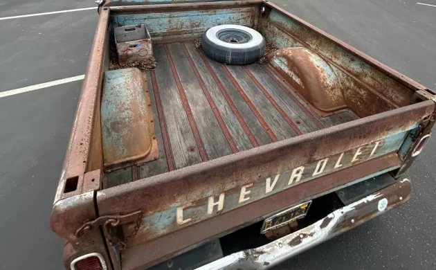 We’ve seen how collector interest has propelled the visibility of Chevy Action Line pickups (’67-’72) and the Square Body edition (’73-’87), so it makes sense that the first-gen C series (’60-’66) would follow suit. There’s not much detail in this truck’s listing, so the images have to do the talkin’. It’s a safe bet that light blue was this truck’s original hue, but the natural patina looks too “organized” as to where it’s evident and where it’s not – note the passenger side door vs. the cargo bed side. It’s as if there is a specific line of demarcation that has somehow been established. Whatever the case, this truck is wearing a better suit of worn-out-ness than I have seen on other examples. As for the cargo bed, the seller tells us, “Brothers oak bed kit and stainless rails installed in June ’23. Stained to match the aged look.” Ok, so there is some manufactured look going on here. Round out all four corners are wide whites, courtesy of Coker Tire, and evidently attached to a lowered suspension.