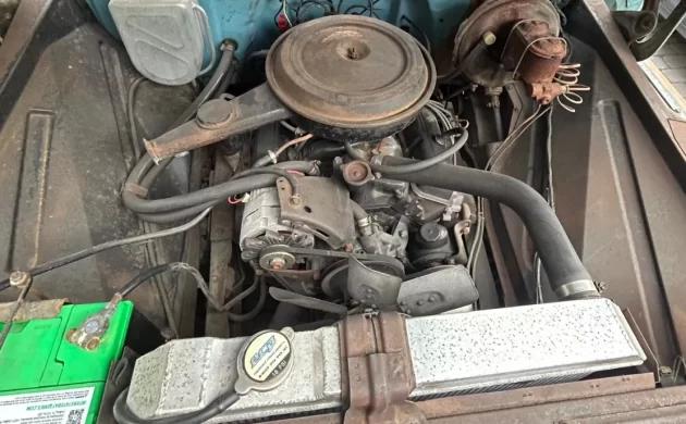Under the hood is one of about 110 million Chevrolet small block V8s that have been manufactured since the beginning of time. The seller offers zero details as to its provenance, but it’s a tale of two eras. The passenger-side-mounted alternator and “long” water pump dates it to ’69 or newer, but the intake manifold oil fill tube says ’68 or earlier, so I’ll put this one in the search me fish category. The seller does claim a rebuild by a previous owner, along with the inclusion of a Turbo-Hydramatic 400 three-speed automatic transmission.